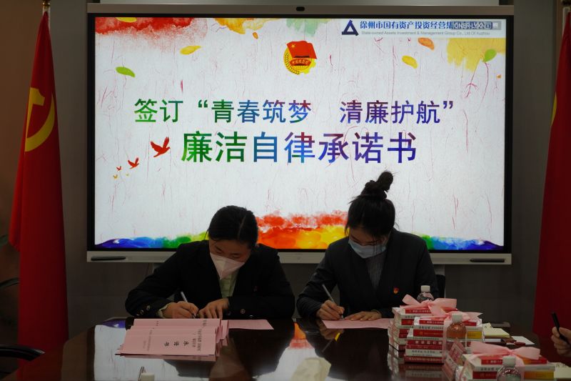 團委書記與各直屬團組織負責人共同在廉潔自律承諾書上簽字,承諾將積極弘揚社會主義核心價值觀,在青年學(xué)廉、育廉、倡廉、促廉工作中做“勤廉國投”的擁護者、踐行者、宣傳者、監(jiān)督者,在實踐中匯聚勤廉國投建設(shè)的青春合力。