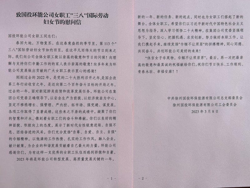 為增進交流、增強信心,在“三八”國際勞動婦女節(jié)之際,國投環(huán)能公司黨總支以“黨建+群團建設(shè)”活動形式,組織開展“三八”婦女節(jié)系列活動,進一步學(xué)習(xí)貫徹落實黨的二十大精神,全面推動“黨建+群團建設(shè)”資源整合、優(yōu)勢互補、共建共贏。