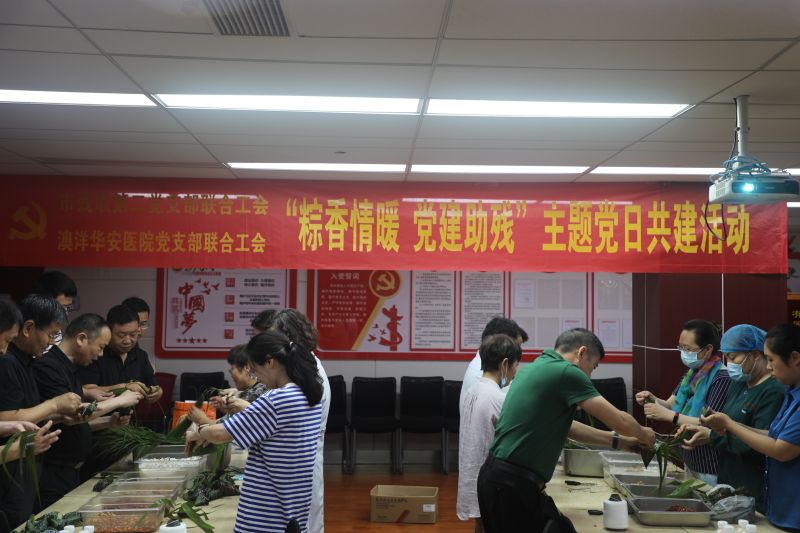在端午節(jié)來臨之際,為傳遞助殘愛心,弘揚時代新風(fēng),澳洋華安康復(fù)醫(yī)院黨支部聯(lián)合工會與市殘聯(lián)第二黨支部聯(lián)合工會共同開展“粽香情暖 黨建助殘”主題黨日活動。