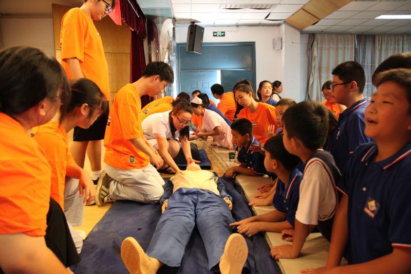 ICU的護理人員向?qū)W生們講解并演示了急救技能——心肺復(fù)蘇術(shù),并耐心指導(dǎo)學(xué)生們利用模擬人進行實操。學(xué)生們對此表現(xiàn)出了極大的興趣,認(rèn)真觀看醫(yī)務(wù)人員演示及其他學(xué)生的操練,積極參與操作練習(xí)。通過此項培訓(xùn),讓學(xué)生們了解并掌握這一挽救生命的急救技能,在關(guān)鍵時刻服務(wù)社會。