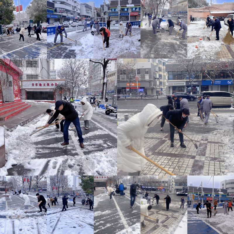 早上8點(diǎn)左右,許多黨員同志就提前到崗,自發(fā)組成了若干個(gè)掃雪大軍,各自負(fù)責(zé)不同區(qū)域的掃雪工作。大家頂著寒風(fēng),拿著鐵鍬、掃帚和雪鏟,爭(zhēng)著鏟、搶著掃,配合默契、齊心協(xié)力快速清理著地面厚厚的積雪。只見鐵鍬飛舞、落地有聲,掃帚擺動(dòng)、殘雪盡除,緊接著手端融雪劑的同志立即撒布開來,一個(gè)個(gè)忙碌的身影在皚皚白雪中構(gòu)成了一道特殊的風(fēng)景線,引得路人聲聲贊嘆。面對(duì)這場(chǎng)極端天氣,海云公司黨員干部積極發(fā)揮黨員模范作用,以實(shí)際行動(dòng)為維護(hù)城市環(huán)境貢獻(xiàn)一份力量。