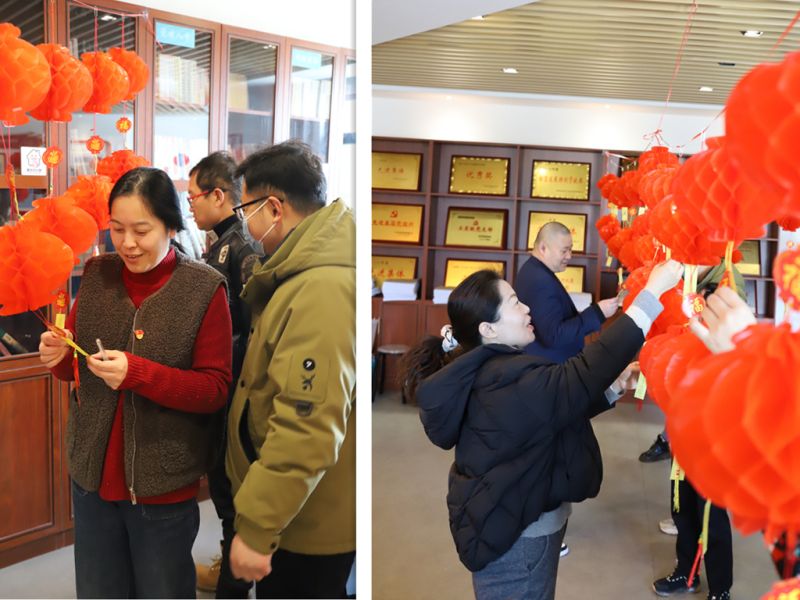 活動(dòng)現(xiàn)場(chǎng),一個(gè)個(gè)燈籠交錯(cuò)點(diǎn)綴,烘托出歡樂祥和的節(jié)日氣氛?;顒?dòng)中共設(shè)置燈謎40余條,內(nèi)容涵蓋傳統(tǒng)文化知識(shí)、黨史以及二十大精神等,既兼具娛樂性和知識(shí)性,也激發(fā)了黨員干部職工對(duì)黨史及二十大精神了解的興趣。黨員們積極參與活動(dòng),認(rèn)真挑選燈謎,相互討論謎底答案,場(chǎng)面十分熱鬧。