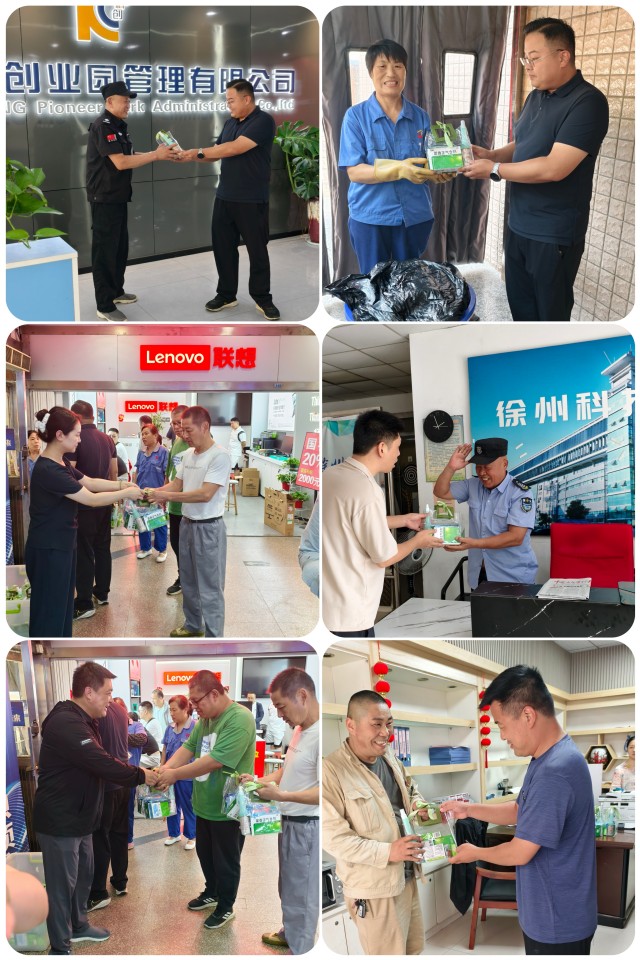 在慰問活動(dòng)中,海云黨支部紀(jì)檢委員、重資產(chǎn)板塊總經(jīng)理王天一率隊(duì)深入科創(chuàng)公司、海云公司、萬(wàn)通公司作業(yè)現(xiàn)場(chǎng),實(shí)地走訪工程維修與保安保潔崗位。慰問組一方面督促各單位強(qiáng)化高溫天氣下勞動(dòng)者權(quán)益保障機(jī)制,從嚴(yán)落實(shí)生產(chǎn)安全與職工健康“雙保障”要求,同步開展高溫安全隱患專項(xiàng)排查;另一方面向堅(jiān)守崗位的一線人員致以誠(chéng)摯問候,反復(fù)叮囑做好個(gè)人防暑降溫措施,隨身攜帶藿香正氣水等常備藥品,并為其發(fā)放海云黨支部精心籌備的“清涼包”,累計(jì)發(fā)放物資六十余份。一線職工紛紛表示,將在確保作業(yè)安全的前提下,持續(xù)提升重資產(chǎn)板塊工程維修與物業(yè)服務(wù)質(zhì)效。