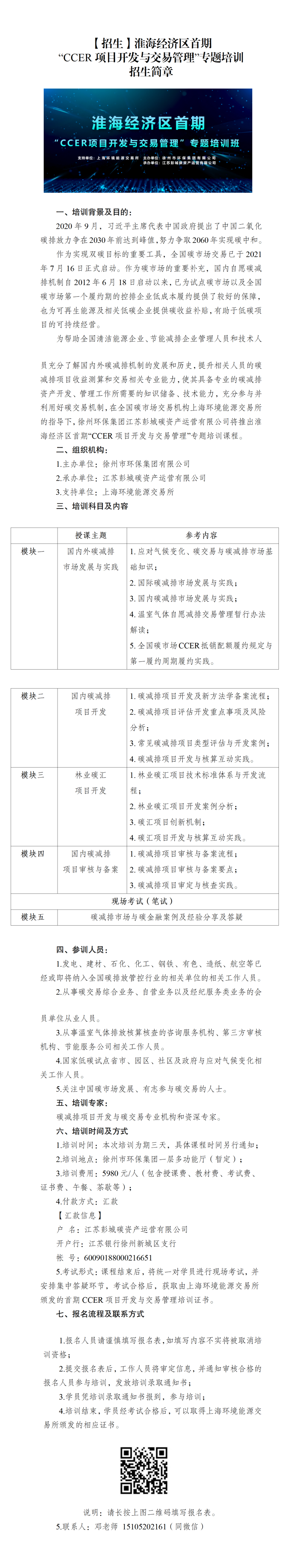 【招生】淮海經(jīng)濟區(qū)首期“CCER項目開發(fā)與交易管理”專題培訓(xùn)招生簡章