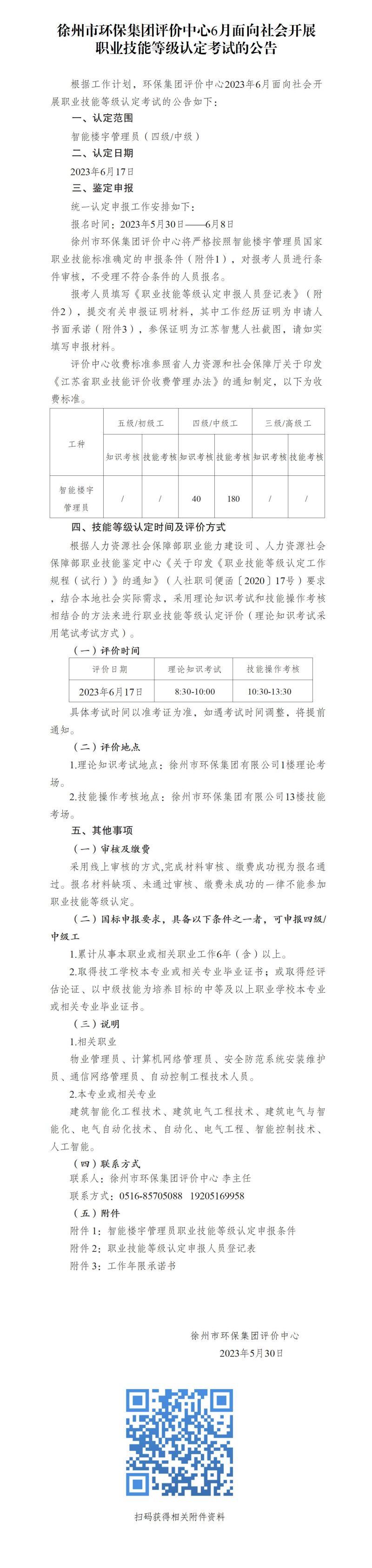 徐州市環(huán)保集團(tuán)評價(jià)中心6月面向社會(huì)開展職業(yè)技能等級認(rèn)定考試的公告