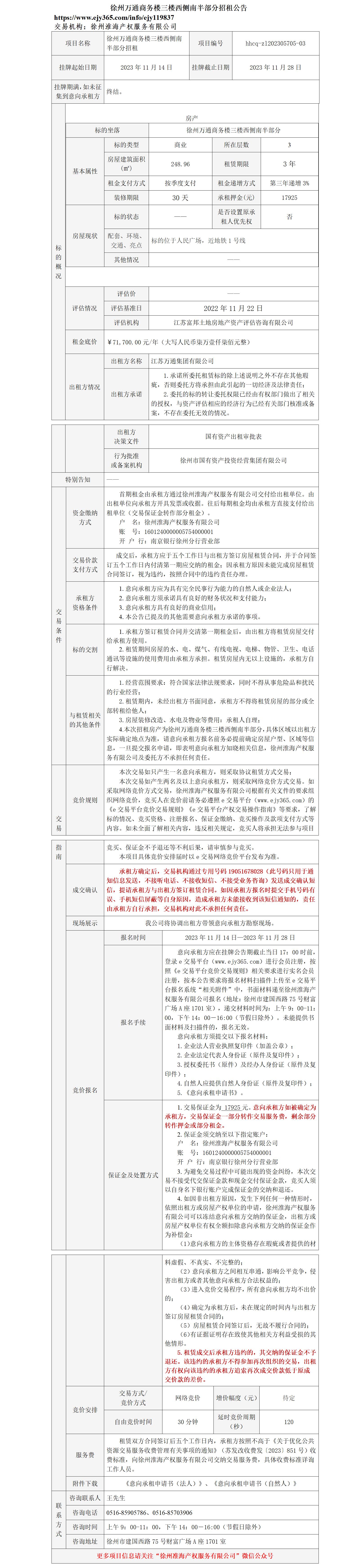徐州萬通商務(wù)樓三樓西側(cè)南半部分招租公告