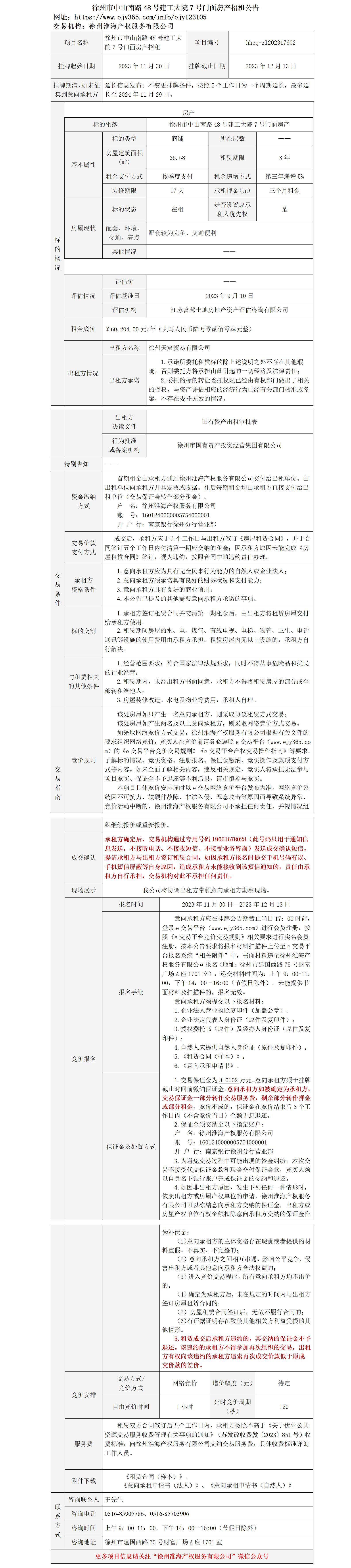 徐州市中山南路48號建工大院7號門面房產(chǎn)招租公告