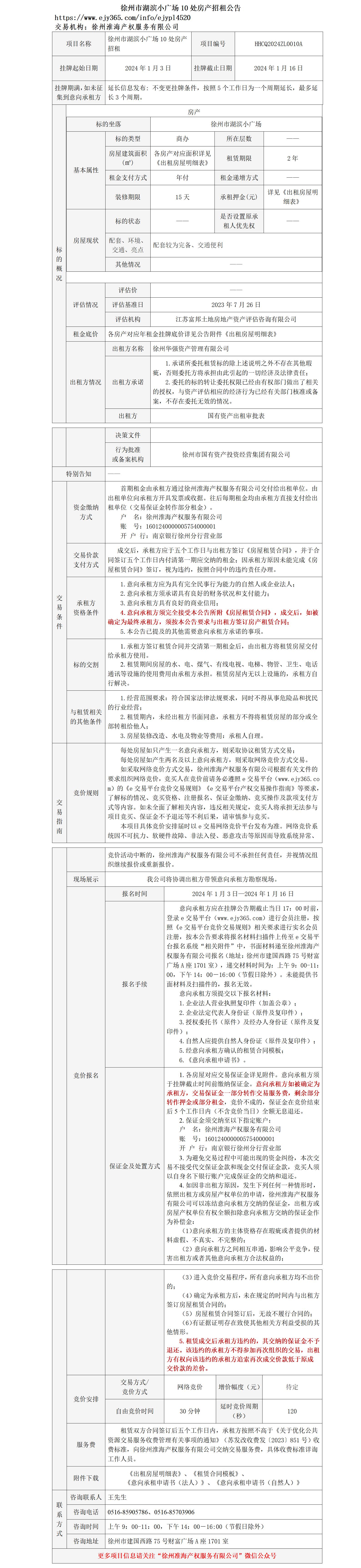 徐州市湖濱小廣場10處房產(chǎn)招租公告
