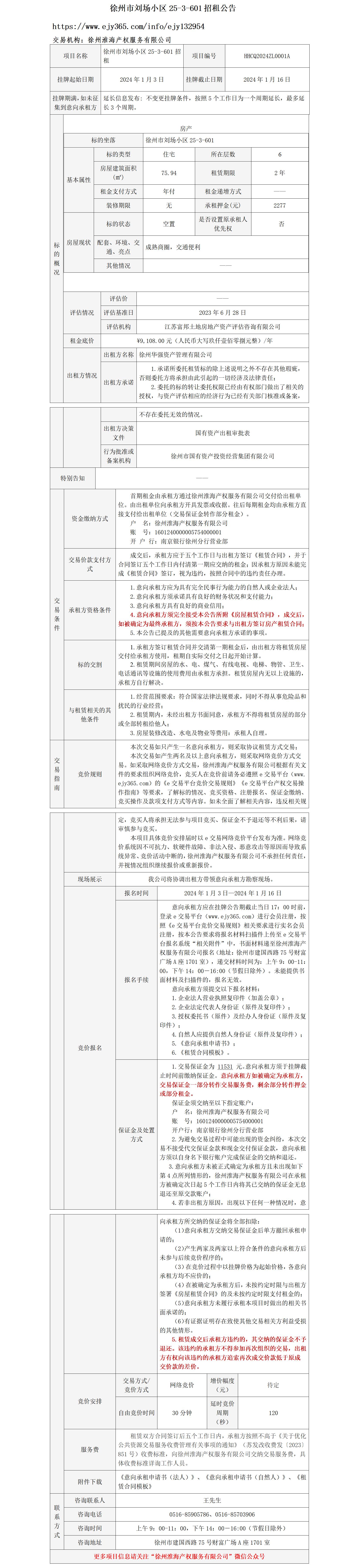 徐州市劉場(chǎng)小區(qū)25-3-601招租公告