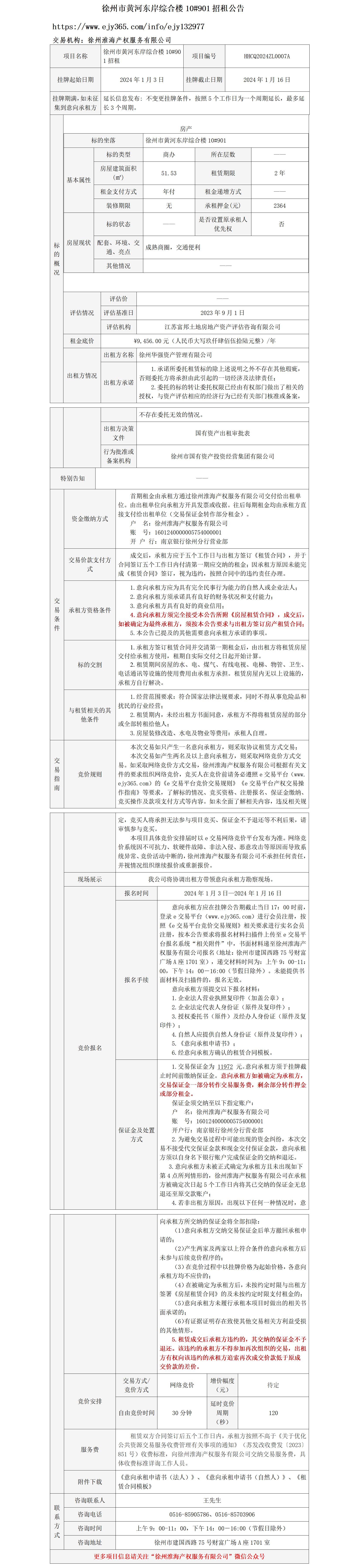 徐州市黃河?xùn)|岸綜合樓10#901招租公告