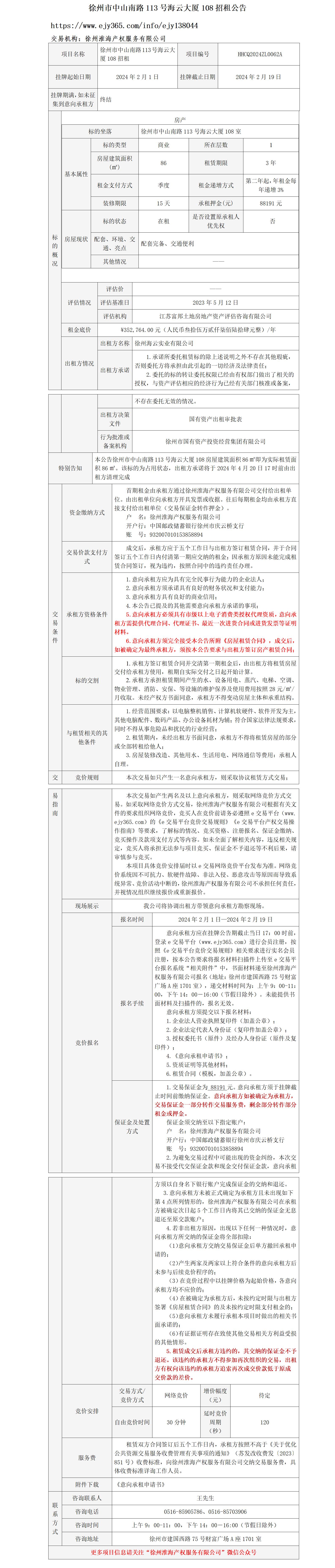 徐州市中山南路113號(hào)海云大廈108招租公告