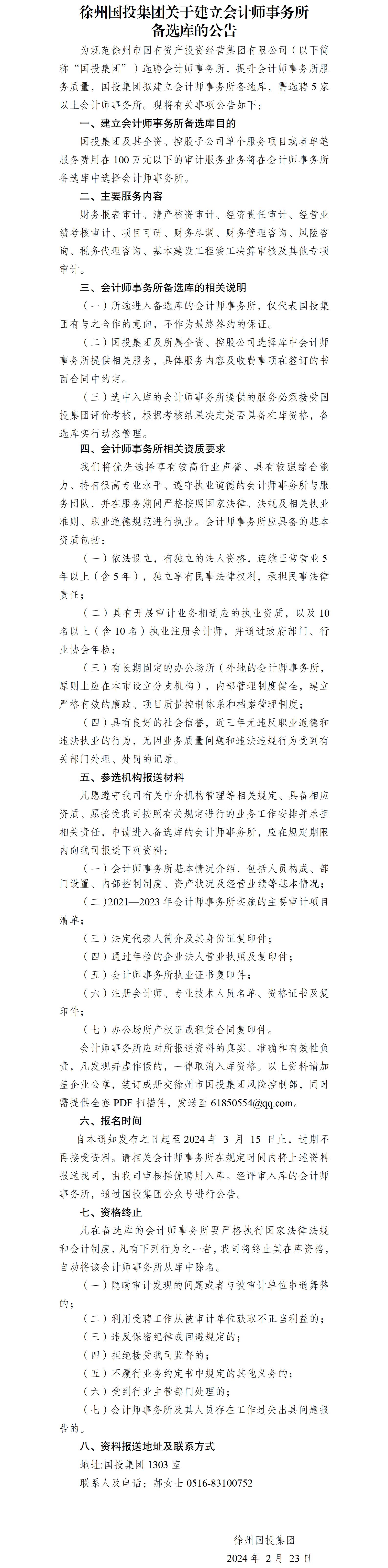 關(guān)于成立國投集團(tuán)會計(jì)師事務(wù)所備選庫的公告