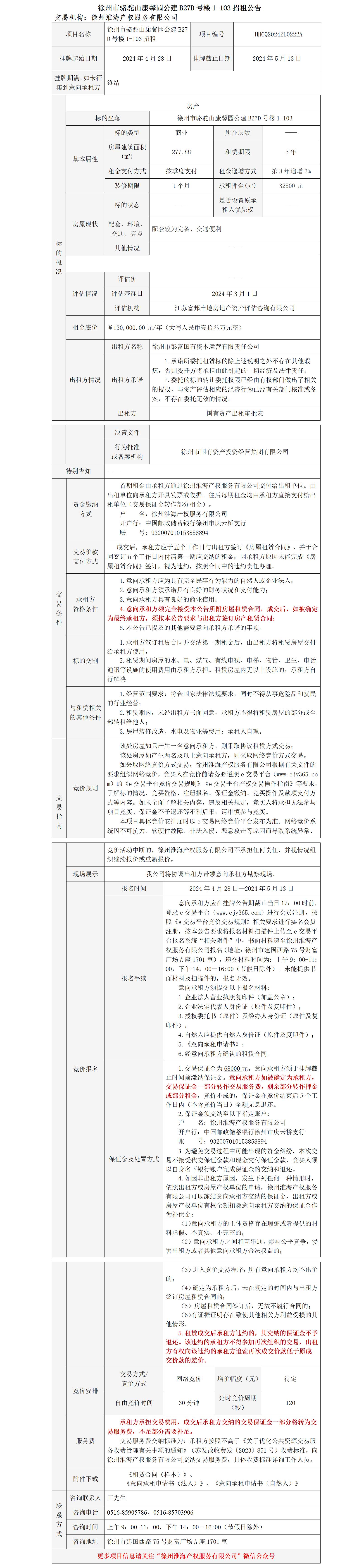 徐州市駱駝山康馨園公建B27D號樓1-103招租公告
