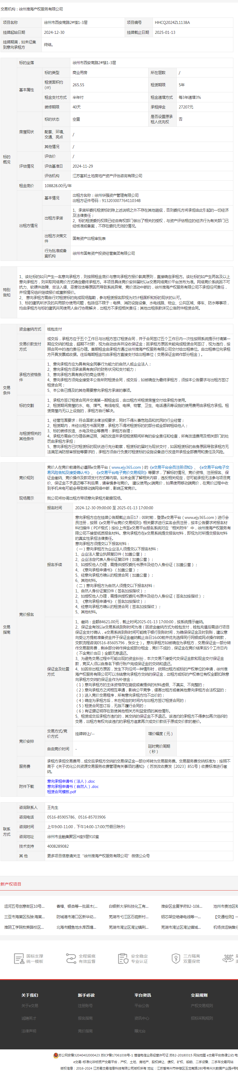 徐州市豐財小區(qū) 老營盤12#-1-107商鋪招租公告