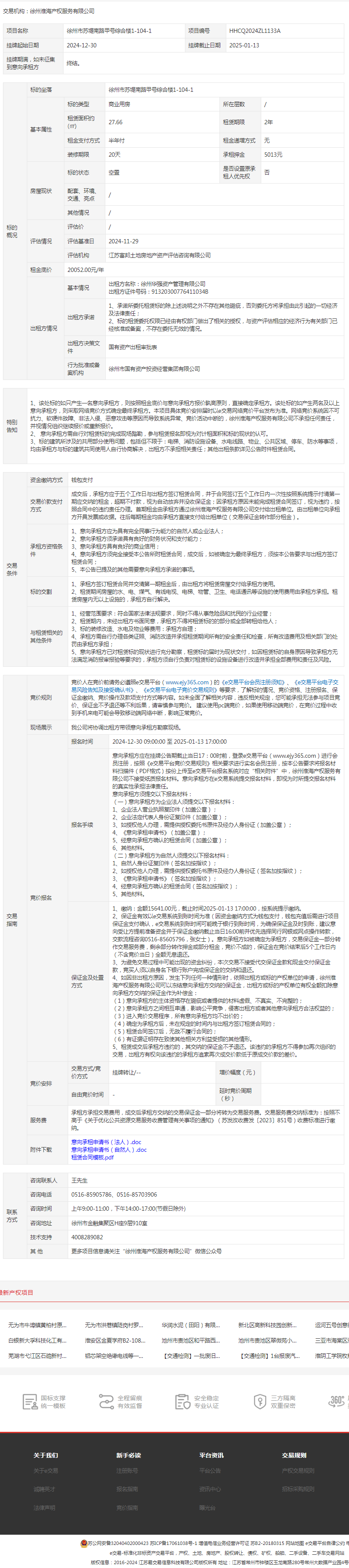 徐州市夾河街牌樓市場3#-1-409、410(二次掛牌)招租公告