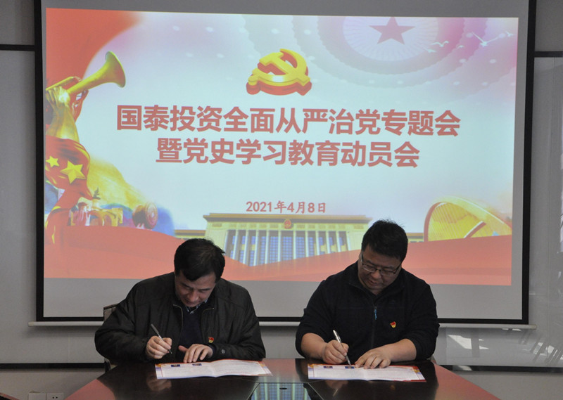 會議對持續(xù)、深入開展黨史學習教育進行了再動員、再部署,傳達學習了《關(guān)于開展百日學百年黨史學習教育活動的通知》等文件,強調(diào)要堅決貫徹落實好習近平總書記在黨史學習教育動員大會上的講話精神,以實施“六個一”工程為主線,牢牢把握重點任務(wù),切實加強組織領(lǐng)導(dǎo),精心組織安排,創(chuàng)新豐富方式,高標準高質(zhì)量開展好黨史學習教育,做到學史明理、學史增信、學史崇德、學史力行,奮力開創(chuàng)國泰投資轉(zhuǎn)型發(fā)展新未來,以優(yōu)異成績迎接建黨100周年。