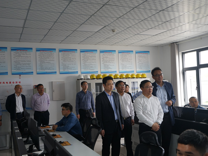李勝一行實地察看了風電場110KV升壓站、風機設備及主控室運行,聽取了風電項目建設、運維情況匯報,詳細詢問了項目安全、質量、運行等方面的具體情況,并與現場工作人員進行了溝通交流。