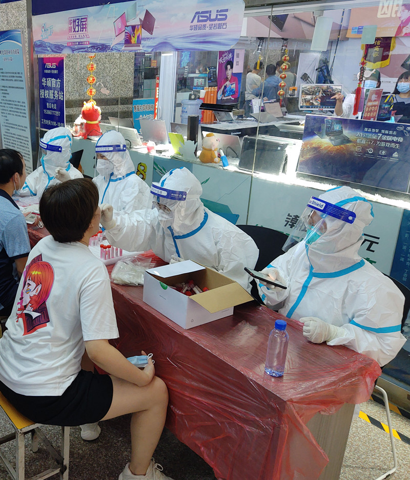 為貫徹落實徐國投疫防辦〔2021〕1號關(guān)于加強常態(tài)化疫情防控工作的通知,強化新冠疫情防控工作,筑牢海云大廈業(yè)戶的健康“防護墻”,海云公司第一時間與云龍區(qū)商務(wù)局及云龍區(qū)衛(wèi)生防疫站進行聯(lián)系,8月3日,在海云大廈現(xiàn)場對所有業(yè)戶及從業(yè)人員約700人進行了全員免費核酸檢測。