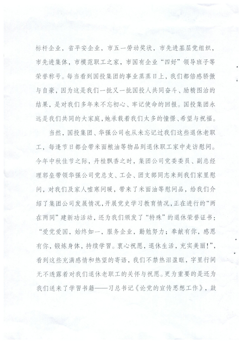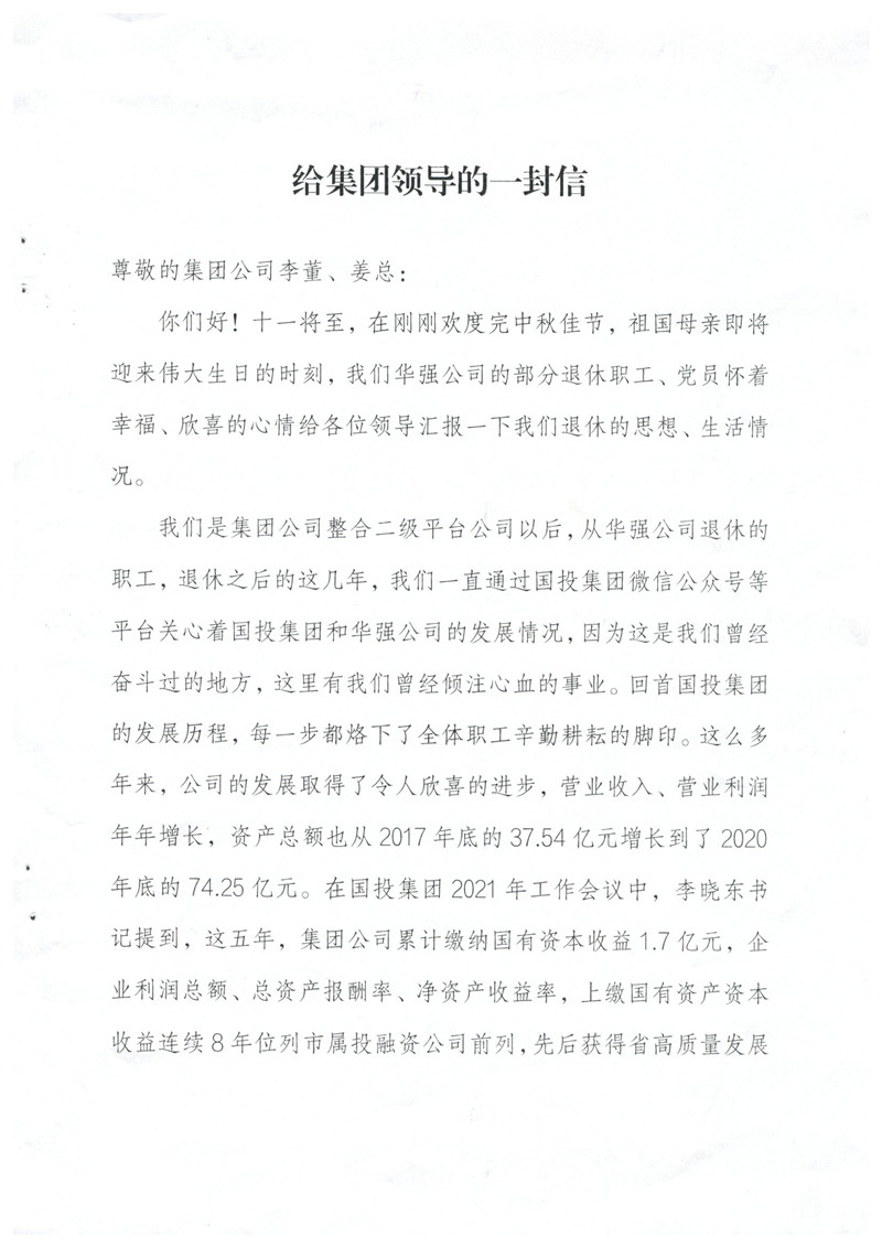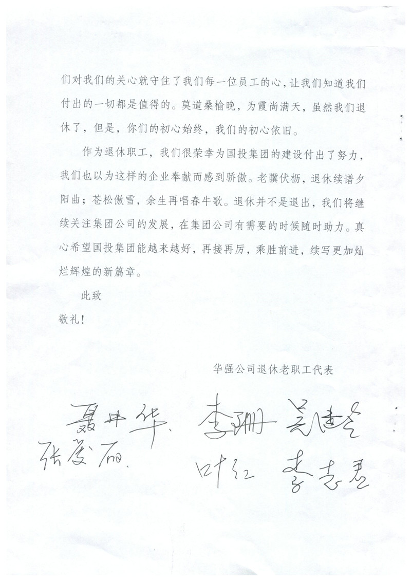 給華強(qiáng)資產(chǎn)公司退休老職工的回信