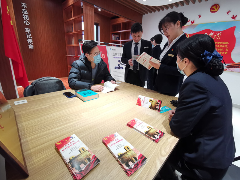 在公司內部,采購了《民法典》《傳染病防疫法》《中國合同大全》等專業(yè)法律書籍百余本,在派發(fā)書籍的同時進行現(xiàn)場講解,激發(fā)員工學習法律知識的熱情;通過組建普法小分隊、開展“普法進食堂”活動、輪番播放《今日說法》《法制講堂》等法制節(jié)目、在餐桌上擺放普法臺卡等形式,將食堂“升級改造”為“普法講堂”,以案例和可視化的形式將法律知識生動展示,為員工提供法治學習新體驗,更加直觀地普及法律法規(guī)知識;還設立法律咨詢處,通過發(fā)放三折頁的形式,現(xiàn)場答疑解惑,接受咨詢,大力開展法律知識宣傳,進一步提高廣大干部職工的法治意識。