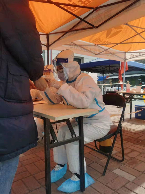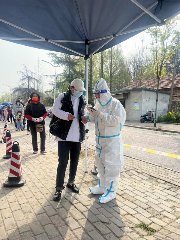 徐鑫在3月28日晚接到云龍區(qū)急需志愿者的通知后,沒有片刻地猶豫,立即報名,以最快速度加入了首批志愿者行列,從協(xié)助醫(yī)護(hù)及社區(qū)工作人員進(jìn)行第一輪核酸檢測服務(wù)開始,一直到現(xiàn)在,徐鑫已堅守在志愿者崗位長達(dá)10天,是華強(qiáng)資產(chǎn)公司服務(wù)時間最長的一位志愿者,他所服務(wù)的社區(qū)多達(dá)4個,橫跨云龍區(qū)、泉山區(qū)。在核酸檢測服務(wù)中,徐鑫始終堅守一線,化身全能“大白”,儼然已成為后續(xù)報到的志愿者們的“導(dǎo)師”,上午采集黃碼人員信息,下午上門核發(fā)通行證,搬運(yùn)物資,維持秩序,參與每日例會,為社區(qū)疫情防控積極建言獻(xiàn)策……志愿者的全線崗位都有徐鑫奔波忙碌的身影,他堅定地向社區(qū)保證:“戰(zhàn)‘疫’不停,絕不離崗”!