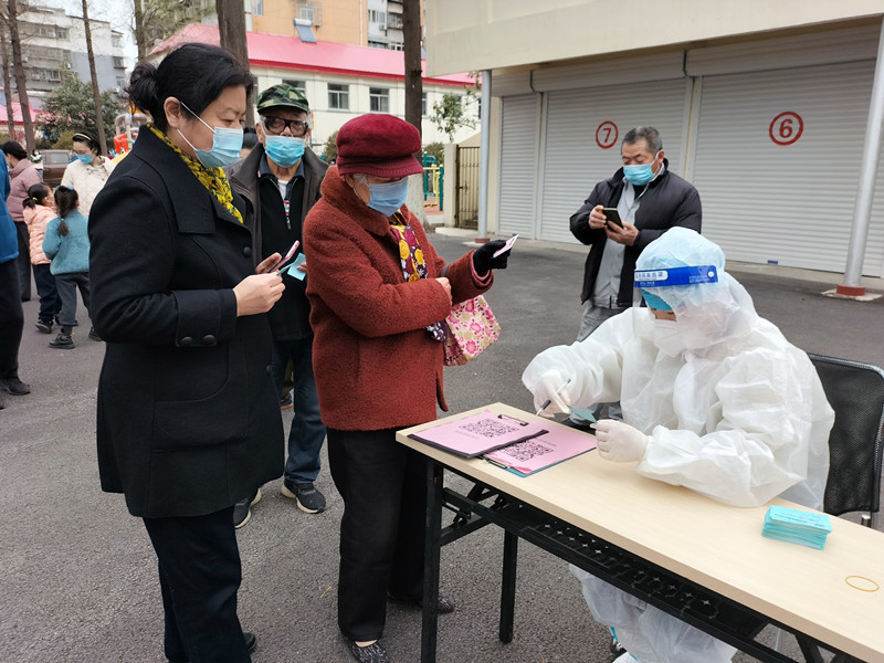 因閘口社區(qū)志愿者數(shù)量不夠,金萍為減輕社區(qū)抗疫壓力,主動聯(lián)系社區(qū),肩負(fù)起兩個核酸檢測點(diǎn)關(guān)鍵崗位的服務(wù)工作。她每天往返于兩個檢測點(diǎn),用自己的手機(jī)下載“采集”APP,核檢人員身份信息錄入、分擔(dān)人流壓力、維持秩序、檢查兩碼以及掃樓排查核檢情況等工作。當(dāng)環(huán)城路車務(wù)段檢測點(diǎn)居民檢測完畢后,金萍根本來不及吃飯,立即飛奔到西站貨場為鐵路隔離職工進(jìn)行上門服務(wù)。她每天不厭其煩地安撫群眾急躁情緒,耐心答疑解惑,一遍又一遍地仔細(xì)核對錄入信息,認(rèn)真細(xì)致的態(tài)度和吃苦耐勞的精神感染了整個社區(qū)服務(wù)隊。