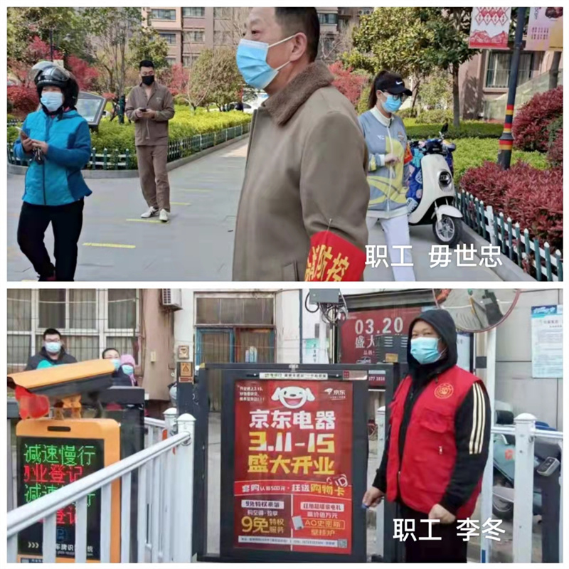 “前方戰(zhàn)疫,后方告急”。近期,物華大廈地下水量急劇增加,家住鼓樓區(qū)的兩名工程人員又因疫情在小區(qū)參與志愿活動(dòng)而無(wú)法值班,公司值守捉襟見(jiàn)肘。副總經(jīng)理劉西賀迎難而上,親自帶領(lǐng)市場(chǎng)經(jīng)理王冬冬擔(dān)負(fù)起了24小時(shí)值守任務(wù)。現(xiàn)場(chǎng)巡視、監(jiān)控觀察、水泵啟動(dòng),確保地下水位始終保持在安全范圍之內(nèi),守護(hù)了物華大廈的安全。輪崗時(shí),劉西賀、王冬冬又分別積極投身到戶部山社區(qū)、煤建西南村社區(qū)參與查驗(yàn)兩碼、秩序維護(hù)、防控點(diǎn)出入證辦理等志愿者服務(wù),做到了值守、志愿兩不誤。