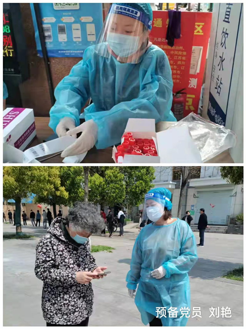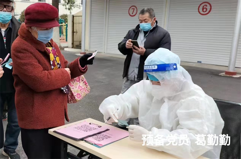 鼓樓區(qū)防疫告急之時(shí),支部居住在鼓樓區(qū)的6名同志又及時(shí)沖鋒到一線,預(yù)備黨員劉艷、毋世新,職工群眾李冬、毋世忠,還有黃碼轉(zhuǎn)綠碼的黨員苗艷、黎偉,全部第一時(shí)間迅速參與到華康社區(qū)、王場(chǎng)社區(qū)、琵琶社區(qū)、九里社區(qū)、紅杉樹(shù)社區(qū)等各個(gè)社區(qū)的志愿者服務(wù)中,排查登記、信息錄入、秩序引導(dǎo)、測(cè)溫驗(yàn)碼……共同保衛(wèi)鼓樓!預(yù)備黨員劉艷在華康社區(qū)志愿服務(wù),每天從早上出門(mén)到傍晚歸家,有時(shí)忙起來(lái)一天都顧不上吃一頓飯,她用無(wú)私奉獻(xiàn)的精神在這場(chǎng)沒(méi)有硝煙的戰(zhàn)“疫”中經(jīng)受住了考驗(yàn)。疫情就是命令,防控就是責(zé)任,居住鼓樓區(qū)的6名同志用實(shí)際行動(dòng)踐行了“國(guó)投人”在疫情防控斗爭(zhēng)中的承諾!