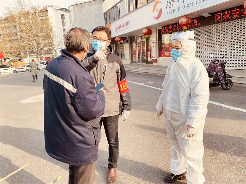 蘇悅公司紀(jì)檢干部嚴(yán)勇——責(zé)任擔(dān)當(dāng)、抗疫有我。為積極響應(yīng)集團(tuán)公司號(hào)召,蘇悅公司全體人員積極參與抗疫工作,把疫情防控作為當(dāng)下首要任務(wù)。時(shí)間緊,任務(wù)重,針對(duì)各個(gè)區(qū)缺少志愿者的情況,作為窗口企業(yè)的蘇悅公司也立刻行動(dòng)起來(lái),黨支部書(shū)記、紀(jì)檢干部嚴(yán)勇同志沖鋒在前,第一時(shí)間到所在社區(qū)進(jìn)行志愿服務(wù),為減緩社區(qū)防疫壓力獻(xiàn)上自己的一份力量。為社區(qū)服務(wù)的同時(shí),嚴(yán)勇同志心系單位,隨時(shí)督查徐州古玩城市場(chǎng)值守情況及職工志愿服務(wù)情況,積極調(diào)度市場(chǎng)的疫情防控和安全生產(chǎn),要求嚴(yán)格按照疫情防控標(biāo)準(zhǔn)不能放松,做好所有進(jìn)入人員測(cè)溫、查碼工作,嚴(yán)格落實(shí)市場(chǎng)消殺要求,時(shí)刻督促值班點(diǎn)備足防疫防控物資、消毒用品和個(gè)人防護(hù)用品,為抗疫工作人員提供舒適安全的工作環(huán)境。