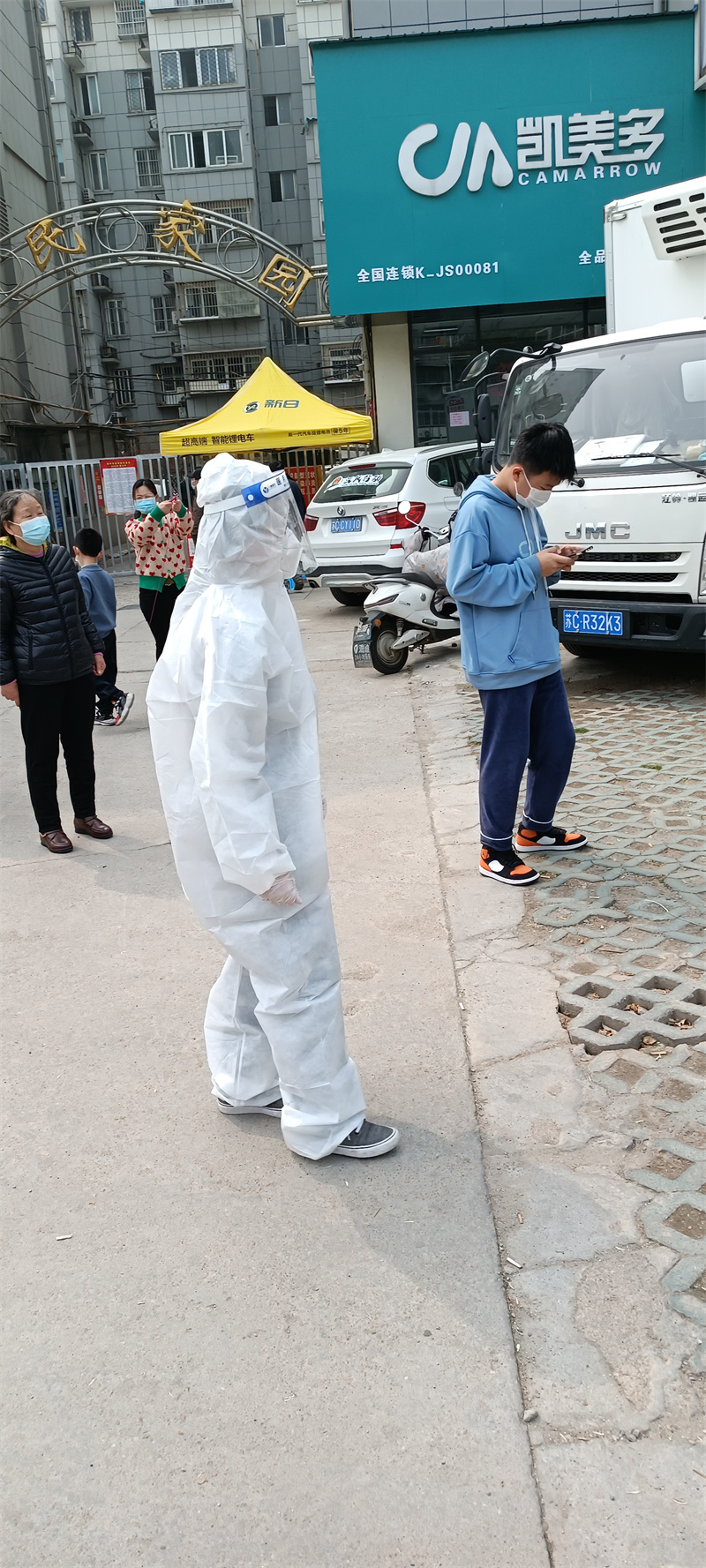 天宸公司紀(jì)檢干部袁飛——“對(duì)不起我來(lái)晚了”!受到黃碼限制,袁飛同志謹(jǐn)遵社區(qū)叮囑,只可外出做核酸,不允許在外逗留。雖然每天做核酸檢測(cè),但社區(qū)屢屢拒絕了他的志愿服務(wù)請(qǐng)求,看著同事們紛紛投入到志愿服務(wù)中去,身為紀(jì)檢干部的他在家里坐如針氈。終于在黃碼轉(zhuǎn)綠碼的第一天,袁飛同志不是去儲(chǔ)備食物、不是去看望父母,而是趕到所在社區(qū)報(bào)到。他以最快速度穿上了防疫服,從被監(jiān)督保護(hù)的黃碼人員轉(zhuǎn)換為志愿者的角色,督促檢查所在小區(qū)核酸檢測(cè)應(yīng)檢盡檢的情況,以及防控物資是否配備齊全等,并幫助核酸檢測(cè)群眾進(jìn)行登記及核驗(yàn)兩碼。
