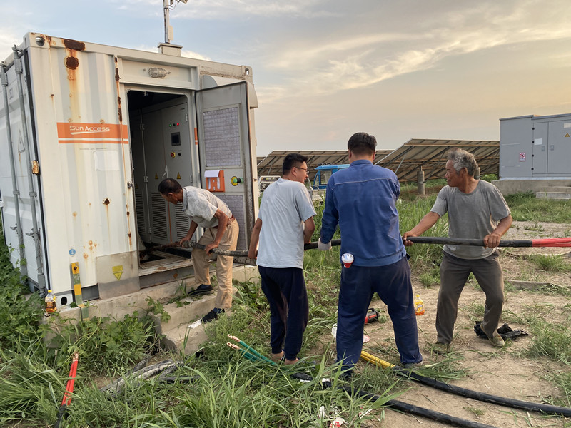 6月26日上午8時,沛縣國源光伏電力有限公司現(xiàn)場運維人員一早便頂著高溫天氣在現(xiàn)場進(jìn)行檢查,突然發(fā)現(xiàn)監(jiān)控后臺有一臺逆變器由于漏電保護(hù)響起了報警聲,現(xiàn)場的運維人員立即前去現(xiàn)場進(jìn)行檢測,初步判定為逆變器與變壓器中間段電纜損壞。運維人員立即向領(lǐng)導(dǎo)匯報并著手準(zhǔn)備電纜的更換工作。由于更換電纜需向供電公司申請生產(chǎn)區(qū)線路高壓側(cè)停電,同時為了減少白天的發(fā)電損失,運維人員于當(dāng)天下午6點半申請高壓側(cè)停電并進(jìn)行電纜更換工作,經(jīng)過連續(xù)3個小時緊急施工,于當(dāng)晚9點半就完成了電纜的更換,又過了10分鐘送電完成,恢復(fù)生產(chǎn)正常。