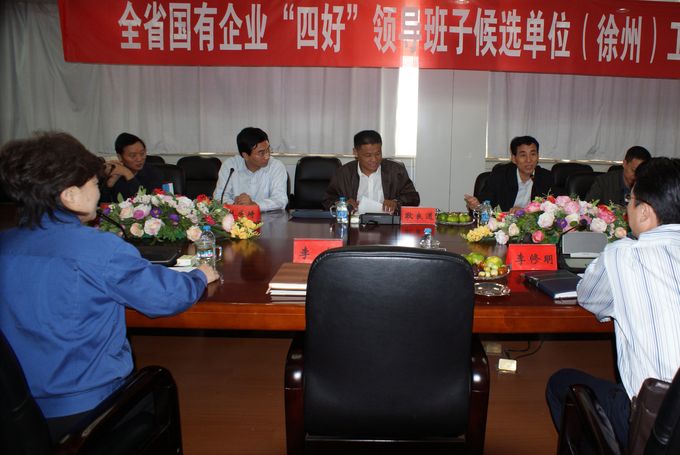 2011年9月21日上午,以省蘇豪集團(tuán)黨委副書記、紀(jì)委書記劉顯豪為組長的省“四好”領(lǐng)導(dǎo)班子考核小組第四組一行4人來到徐州,對(duì)徐工集團(tuán)、國投集團(tuán)等全省國有企業(yè) “四好”領(lǐng)導(dǎo)班子候選單位進(jìn)行檢查考評(píng)。市委組織部副部長杜慶琦、干部四處處長張小件,市國資委副書記、副主任孫惠風(fēng)參加會(huì)議并聽取匯報(bào)。