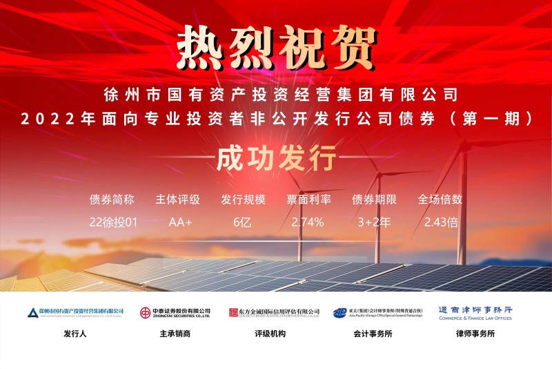 2022年11月9日,徐州市國有資產(chǎn)投資經(jīng)營集團有限公司(簡稱“徐州國投集團”)2022年面向?qū)I(yè)投資者非公開發(fā)行公司債券(第一期)成功發(fā)行,募集資金規(guī)模6億元,期限為5(3+2)年,票面利率為2.74%。作為徐州國投集團在資本市場上首次發(fā)行的債券,此次發(fā)行進一步拓寬了公司的融資渠道,優(yōu)化了負(fù)債結(jié)構(gòu),降低了融資成本,邁出了從傳統(tǒng)融資方式向市場化融資方式轉(zhuǎn)變的關(guān)鍵一步,為后續(xù)在資本市場運用其他融資工具奠定了良好基礎(chǔ)。