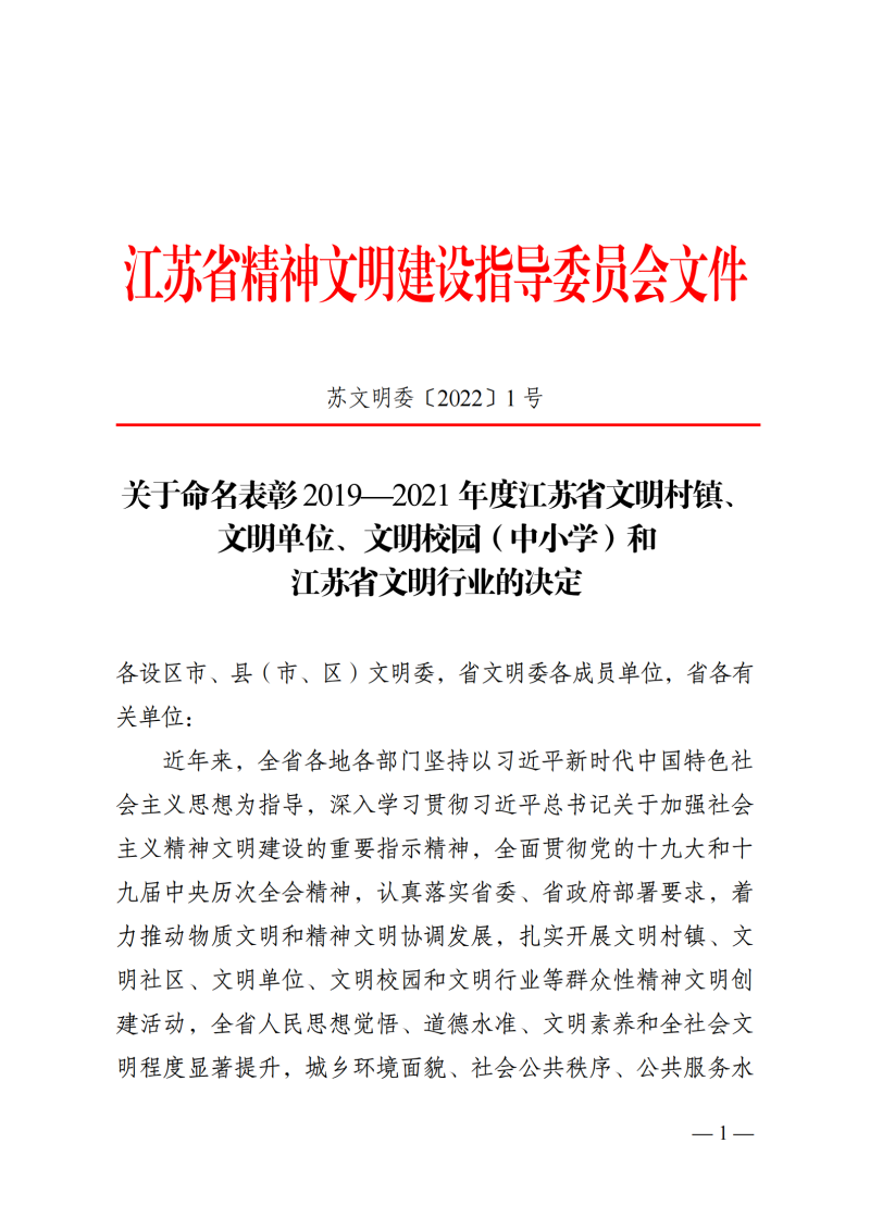 一、1月11日,徐州國投集團(tuán)(本部)榮獲2019—2021年度“江蘇省文明單位”榮譽(yù)稱號。