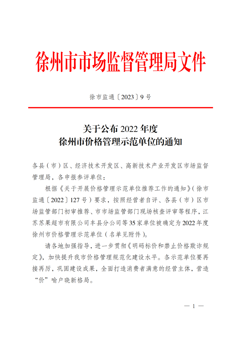 為深入推進(jìn)價(jià)格誠(chéng)信建設(shè),不斷規(guī)范和引導(dǎo)市場(chǎng)價(jià)格行為,培育誠(chéng)實(shí)守信的市場(chǎng)主體。近日,經(jīng)過經(jīng)營(yíng)者自評(píng)、各縣(市)區(qū)市場(chǎng)監(jiān)管部門初審?fù)扑]、徐州市市場(chǎng)監(jiān)管部門現(xiàn)場(chǎng)核查評(píng)審等一系列程序,國(guó)泰太平洋酒店榮獲徐州市市場(chǎng)監(jiān)督管理局“2022年度徐州市價(jià)格管理示范單位”榮譽(yù)稱號(hào)。