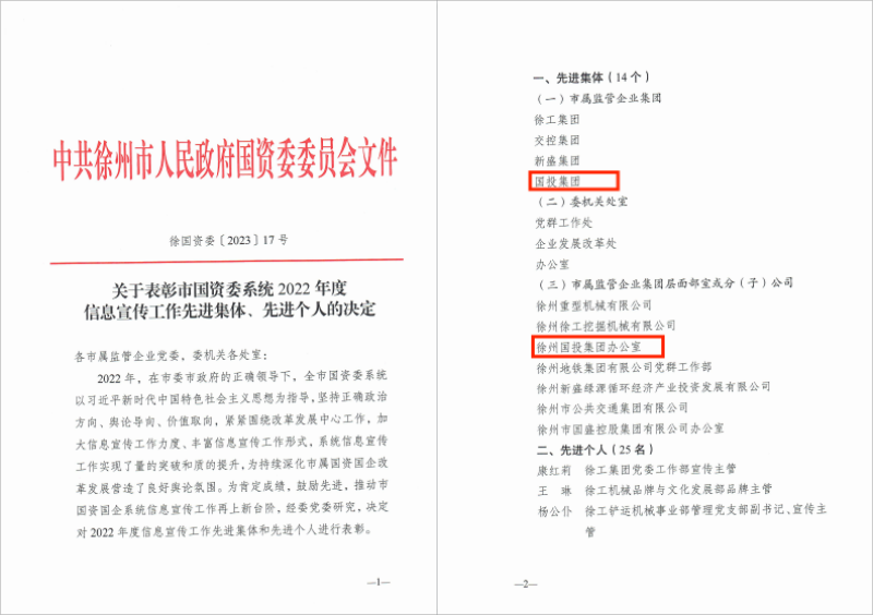 近日,市國資委表彰了市國資委系統(tǒng)2022年度信息宣傳工作先進(jìn)集體,集團(tuán)公司榮獲“市屬監(jiān)管企業(yè)集團(tuán)先進(jìn)集體”,集團(tuán)公司辦公室榮獲“市屬監(jiān)管企業(yè)集團(tuán)層面部室或分(子)公司先進(jìn)集體”。