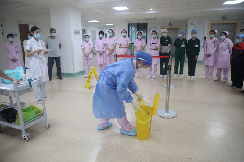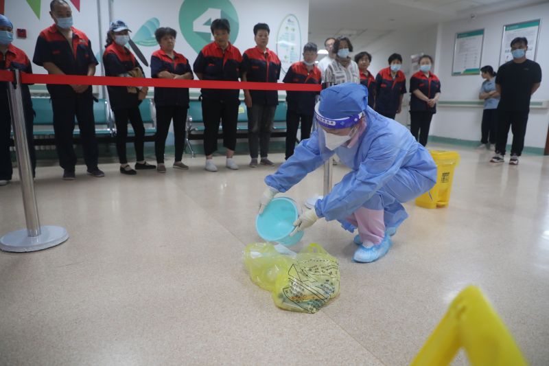為進一步規(guī)范醫(yī)療廢物管理,提高醫(yī)務(wù)人員及保潔人員在發(fā)生醫(yī)療廢物意外遺撒、泄露后的應(yīng)急處置能力,避免因醫(yī)療廢物泄露意外事件導致人身傷害和環(huán)境污染事故的發(fā)生,7月20日下午,徐州澳洋華安康復醫(yī)院開展醫(yī)療廢物遺撒、泄露應(yīng)急處置演練活動。此次演練由醫(yī)院感染管理科組織實施,醫(yī)務(wù)部、護理部、后勤保障部等部門密切配合,各臨床科室護士、保潔人員共同參加。