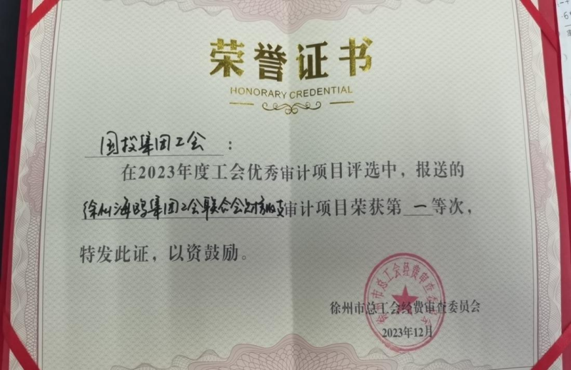 為進(jìn)一步強(qiáng)化工會(huì)經(jīng)審組織監(jiān)督職能,規(guī)范工會(huì)審計(jì)行為,切實(shí)提升工會(huì)審計(jì)質(zhì)量,市總工會(huì)經(jīng)審會(huì)開(kāi)展2023年度工會(huì)優(yōu)秀審計(jì)項(xiàng)目評(píng)選工作,并于近日公布了2023年度工會(huì)優(yōu)秀審計(jì)項(xiàng)目評(píng)選結(jié)果,國(guó)投集團(tuán)選送的審計(jì)項(xiàng)目“徐州海鷗集團(tuán)工會(huì)聯(lián)合會(huì)財(cái)務(wù)收支”榮獲第一等次。