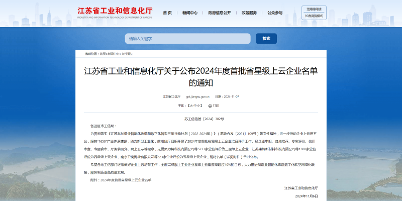 近日,江蘇省工業(yè)和信息化廳發(fā)布2024年度首批省星級上云企業(yè)名單,經(jīng)企業(yè)申報、各地推薦、專家評價、信用審查、專題會審等程序,國新公司入選首批五星級上云企業(yè),標志著國新公司在強化工業(yè)互聯(lián)網(wǎng)平臺建設、推進數(shù)字化轉型和提升智能化制造水平等方面取得了顯著成效,在信息化建設方面邁上新的臺階。