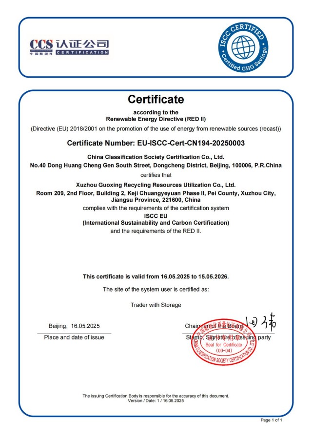首戰(zhàn)告捷,開辟生物質(zhì)能源貿(mào)易新賽道。作為集團(tuán)公司能源板塊的第三戰(zhàn)略賽道——生物質(zhì)能源,國興公司積極響應(yīng)國家“雙碳”戰(zhàn)略,全力布局生物質(zhì)能源開發(fā)與應(yīng)用。今年5月,公司成功通過歐盟ISCC工業(yè)級混合油(UCO)認(rèn)證,成為符合國際可持續(xù)生物能源原料標(biāo)準(zhǔn)的核心供應(yīng)商。此次千噸級訂單的落地,不僅驗證了公司在原料品質(zhì)、供應(yīng)鏈管理及市場響應(yīng)能力上的優(yōu)勢,更彰顯了其在生物質(zhì)能源貿(mào)易領(lǐng)域的核心競爭力。