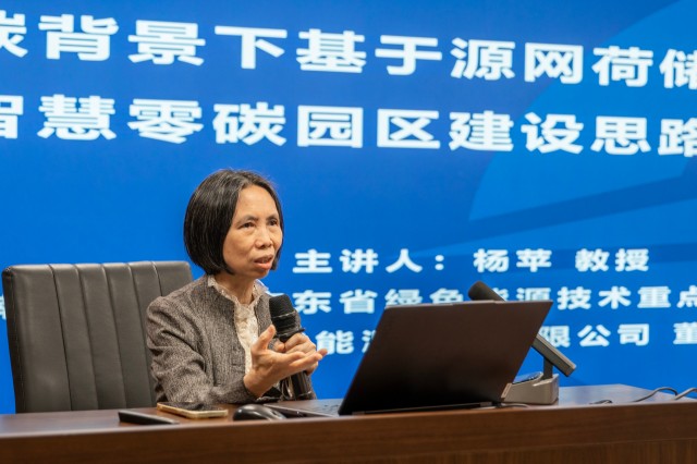 在授課過程中,楊蘋教授系統(tǒng)闡述了源網荷儲一體化的基本概念、系統(tǒng)架構、運行機制及其在提升能源效率、保障電力安全、促進新能源消納方面的重要作用。結合典型案例,重點講解如何運用源網荷儲一體化模式,統(tǒng)籌園區(qū)能源供應、電網運行、負荷管理和儲能配置,實現園區(qū)的低碳零碳運行,打造綠電園區(qū)。最后,結合徐州產業(yè)特點、資源稟賦,共同探討本地區(qū)推動源網荷儲協同互動、建設零碳園區(qū)的潛在路徑與策略建議。